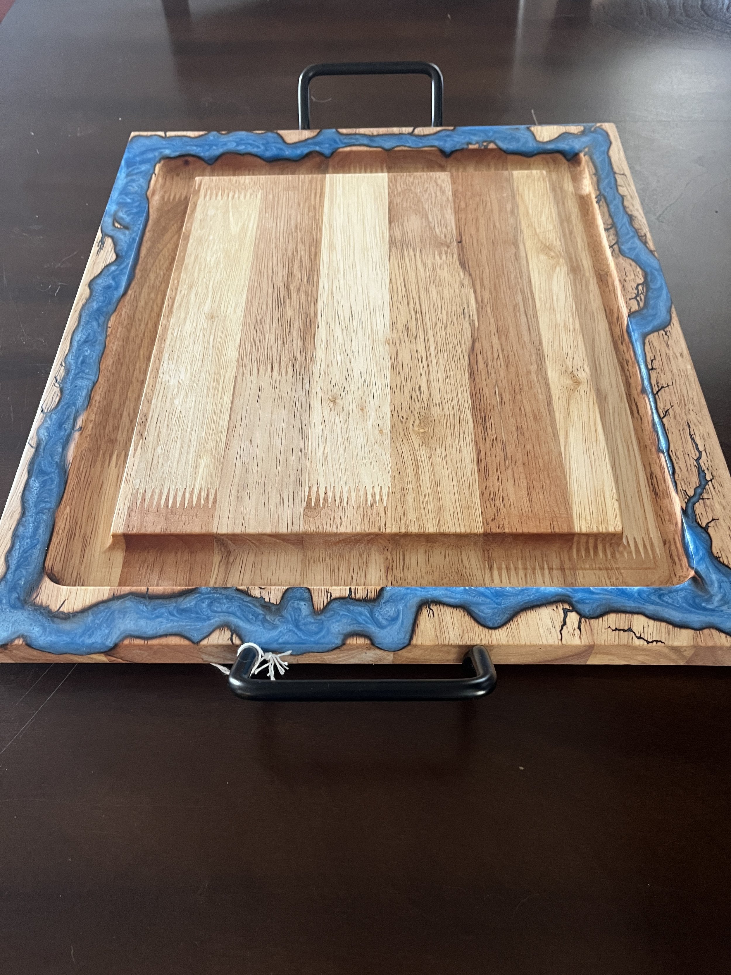 I am currently supporting my wife’s mobile Charcuterie business, She Cutie Cart, with different sizes, styles, and colors of Charcuterie boards. When I’m not keeping her inventory full, I find time to work on other individual pieces, and even some custom orders.